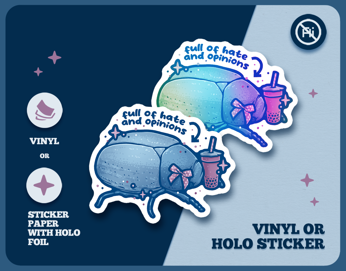 "Full of hate and opinions" Vinyl or Holographic sticker