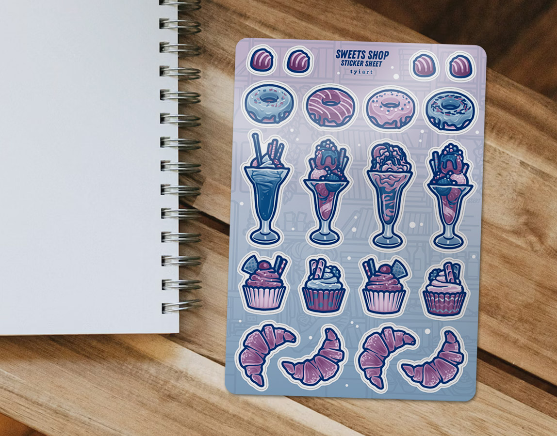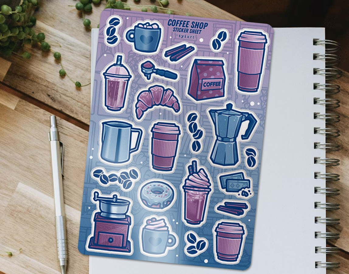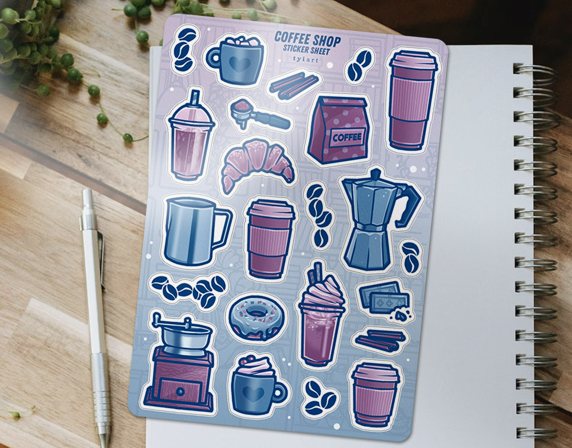 Na výběr mezi Coffee shop (samolepky na téma káva) nebo Sweets shop (samolepky na téma cukrárna).