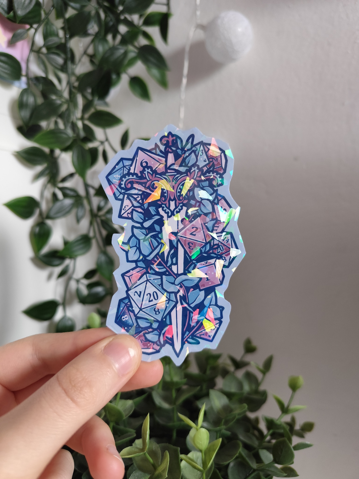 ✸ Holographic variation: Printed on semi-glossy sticker paper, covered with holographic foil. This variation may start peeling off if run under stream of water regularly.