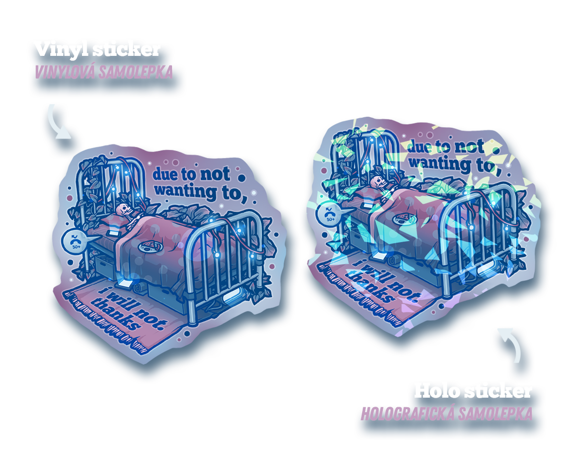 ✸ Holographic variation: Printed on semi-glossy sticker paper, covered with holographic foil. This variation may start peeling off if run under stream of water regularly.